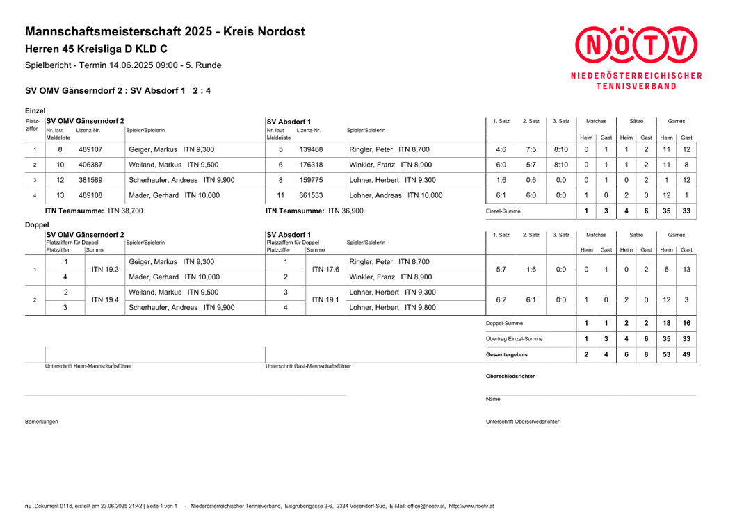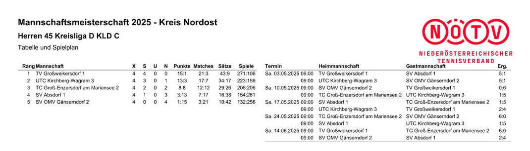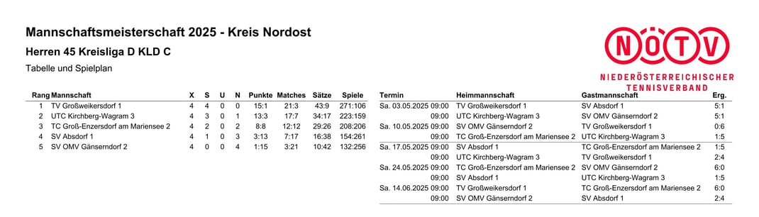 HERREN 45+ ALLE DATEN ZUR SAISON 2025