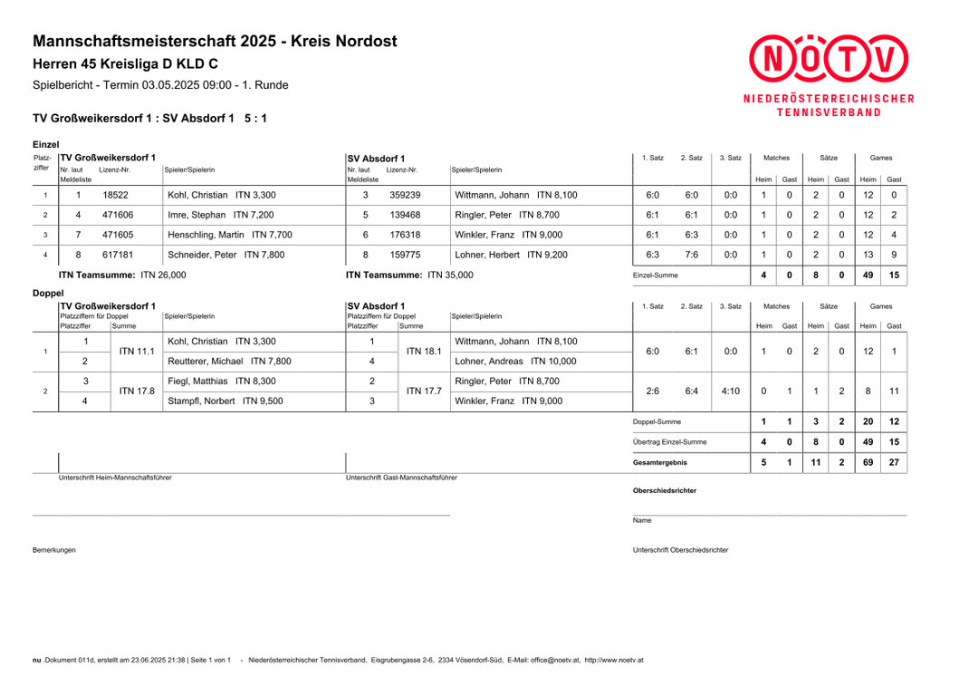 SPIELBERICHT RUNDE #1 - TV GROSSWEIKERSDORF vs. SVA 5:1