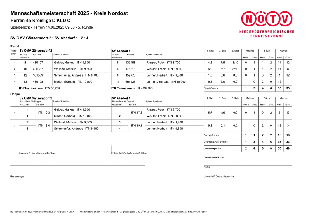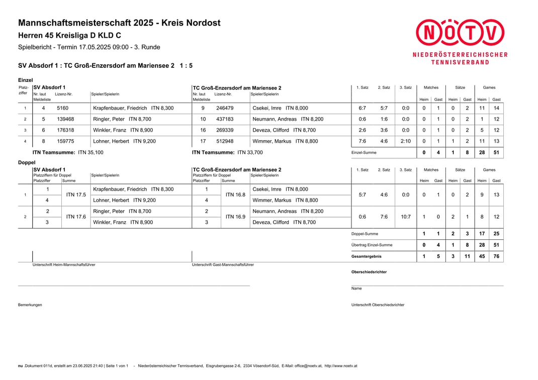 Herren 45+ ITN 5,0