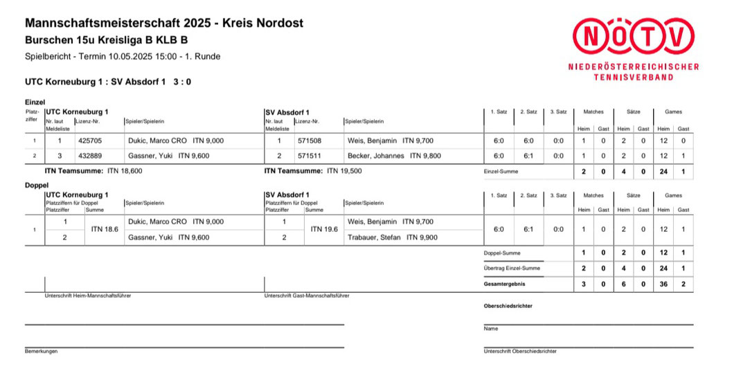SPIELBERICHT RUNDE #1 - UTC KORNEUBURG vs. SVA 3:0