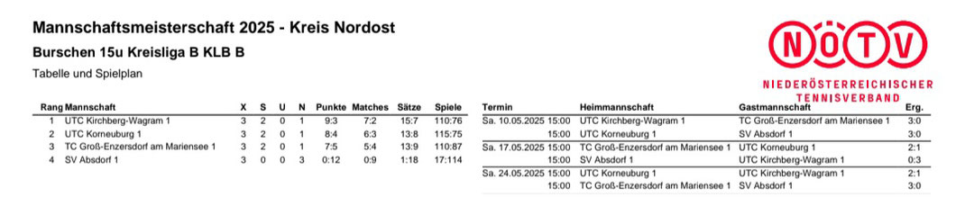JUGEND U15 - AUSLOSUNG 2025 - SPIELTERMINE