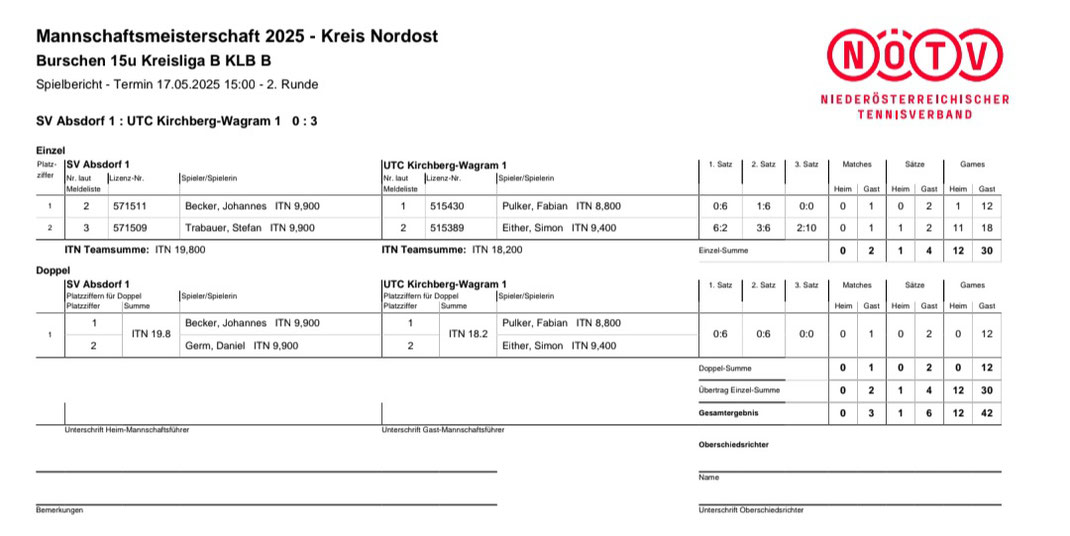 SPIELBERICHT RUNDE #2 - SVA vs. UTC KIRCHBERG 0:3